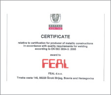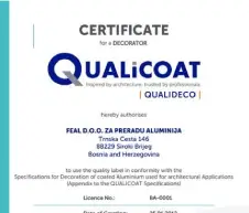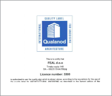 We hold ISO 3834 and EN 15085-2 certificates, which enable us to perform demanding welded aluminum structures. We produce our products with surface protection in accordance with the Qualicoat, Qualanod and Qualideco certificates. The quality of Feal systems is tested in authorized laboratories: IGH-Zagreb, IFT-Rosenheim and GBD Bregenz.