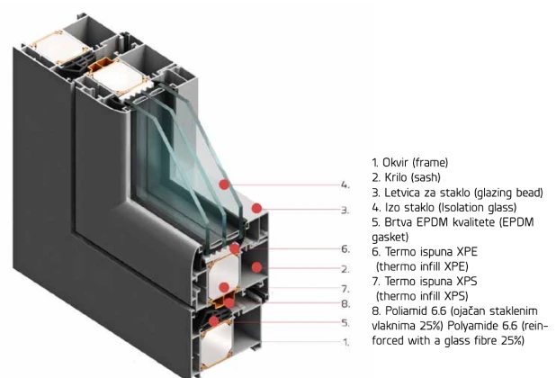 At ALMART, we provide aluminum profiles with thermal break, engineered to deliver excellent insulation and reduced energy consumption. The thermal break — a polyamide barrier within the profile — separates the outer and inner sections, preventing condensation and improving comfort throughout all seasons.